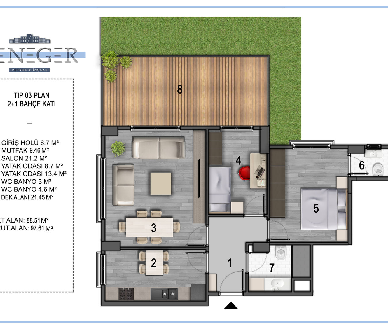 Proje arsası 6412 m² olup toplam 3 adet bloktan oluşmaktadır.